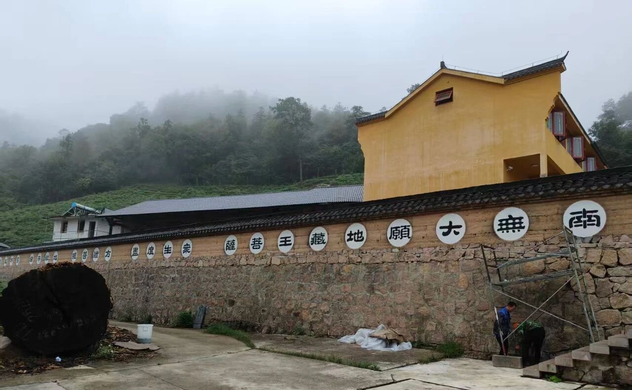 土墙复建工程圆满三年之余,为使土墙古韵再显庄严,今逢十方善信护持,对照古墙题壁内容进行了修复施工。修复圆满的题壁与古墙相得益彰,醒目庄严,意寓佛光普照之境,更行地藏菩萨之愿。让每一个进入寺院的有缘大众,见字便心念一句佛号,升起一念对佛法僧三宝的恭敬心。
