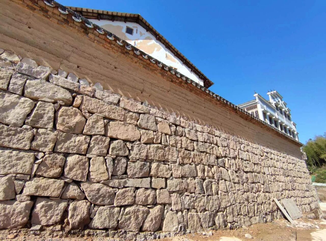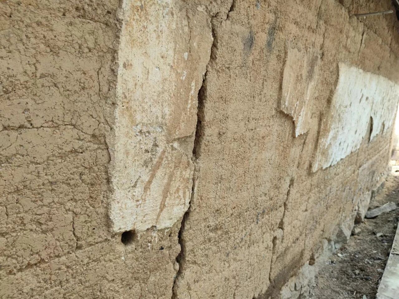 2006年山洪大水冲到寺院左侧的土墙,当时由于缺乏修缮认识,加之修缮款项不足,故采取水泥石砖墙垒砌。虽作修葺,但与右侧齐称的原貌土墙以及古老的寺院违和感太严重。2022年仲夏,拆除右侧土墙后的临时铁棚,土墙经年累月间,土基早已失去牢固,缺乏铁棚的护靠,更是濒濒欲危,恐有坍塌之势,亟待修缮。