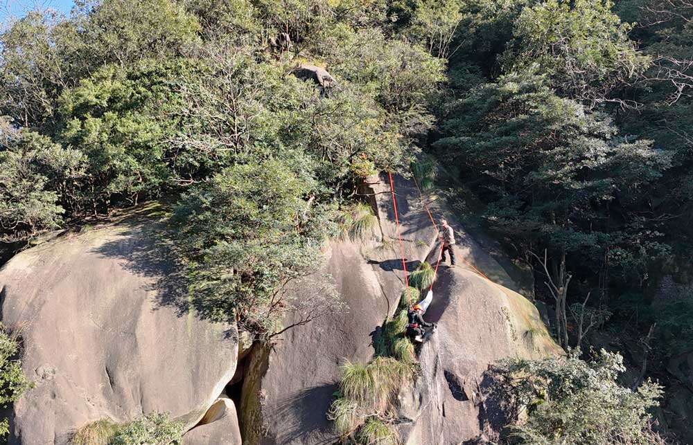 2025年11月,经过实地勘探,于天柱峰下青峭湾找到一处水源。饮水线路为高山,坡陡,崖石,杂草,荆棘,全线长2000余米。饮水线长,需由高至低布线,施工材料全靠人工背、抬,沿途清除杂草,到崖石处更需高空吊线到合适位置布线,难度大,施工危险系数高。